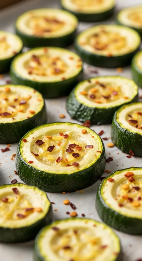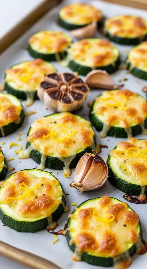 Lemon garlic baked zucchini offers a fresh and bright flavor that balances the rich roasted texture. The lemon zest adds fragrance while garlic provides savory depth. The slices roast quickly and develop golden edges without becoming soggy.