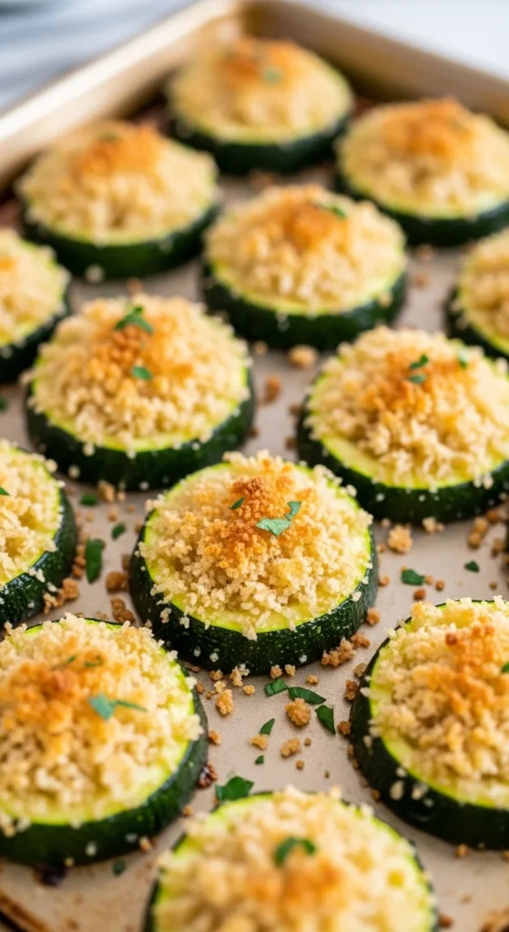 Baked zucchini with panko garlic crust delivers a crunchy topping while the zucchini stays soft underneath. The panko breadcrumbs turn golden in the oven and create a satisfying texture. Garlic and olive oil help the crust stick to the zucchini while adding rich flavor.