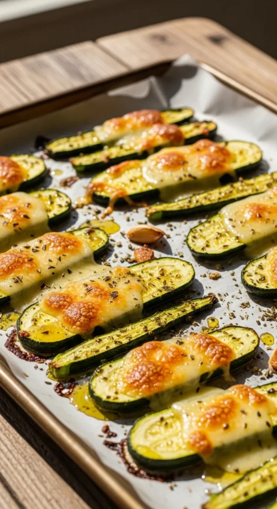 - Bake 18–20 minutes until zucchini is tender and cheese browns.