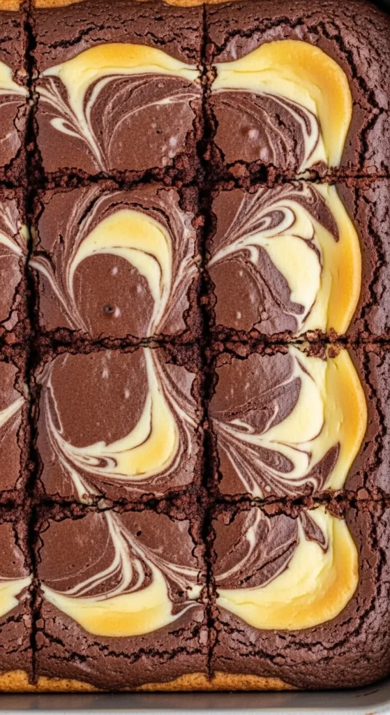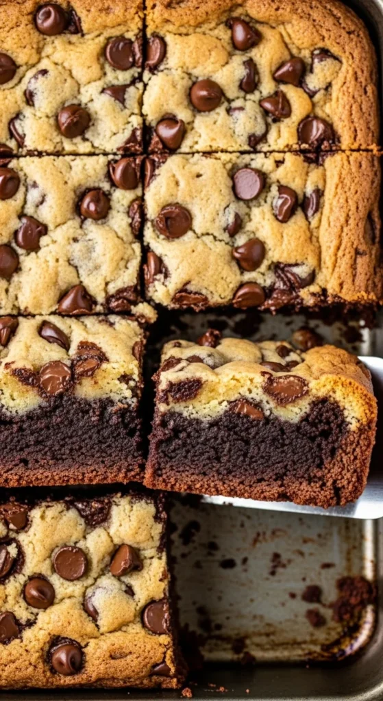 Layer cookie dough over brownie batter and bake 30–32 minutes at 350°F.