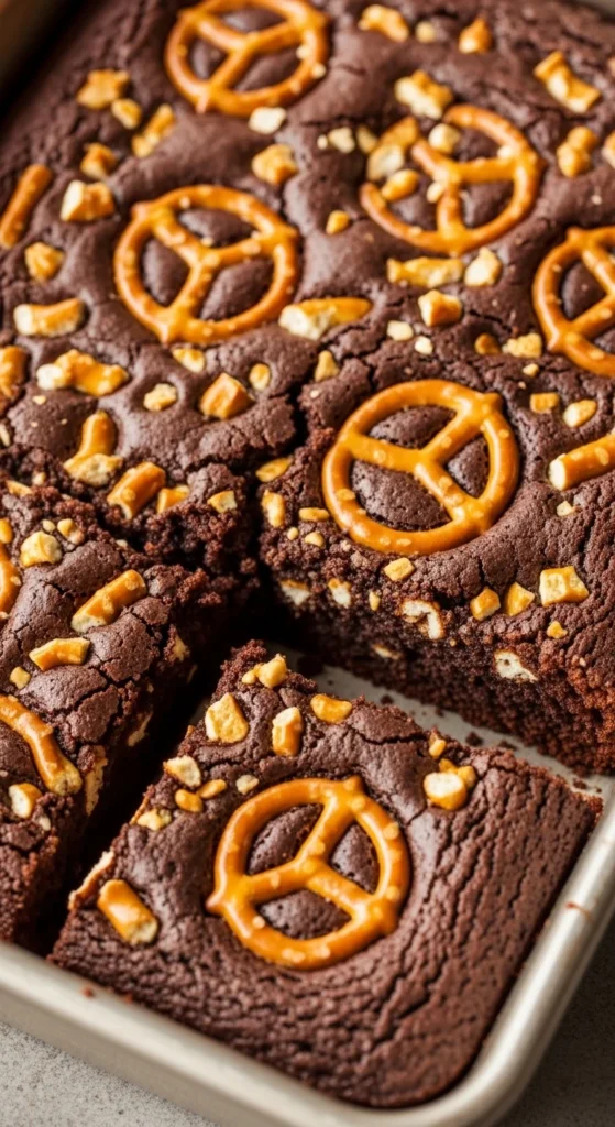 Fold pretzels into batter and bake 25 minutes at 350°F.