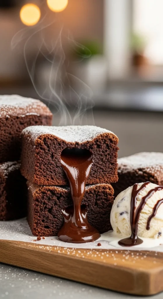 Let brownies cool for clean slices. Sprinkle powdered sugar over the top. Serve warm with vanilla ice cream. Add chocolate syrup or caramel drizzle for extra flavor.