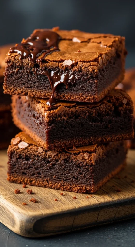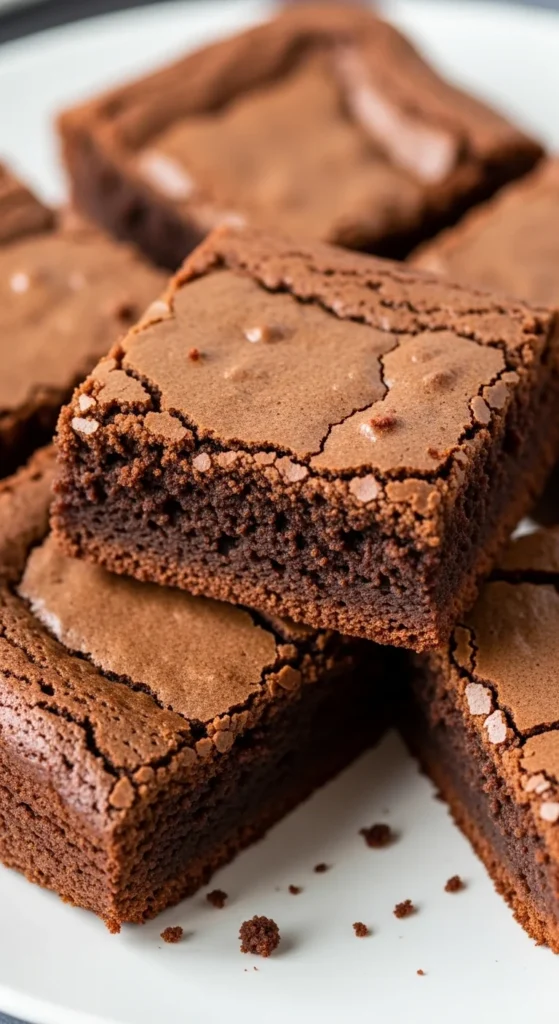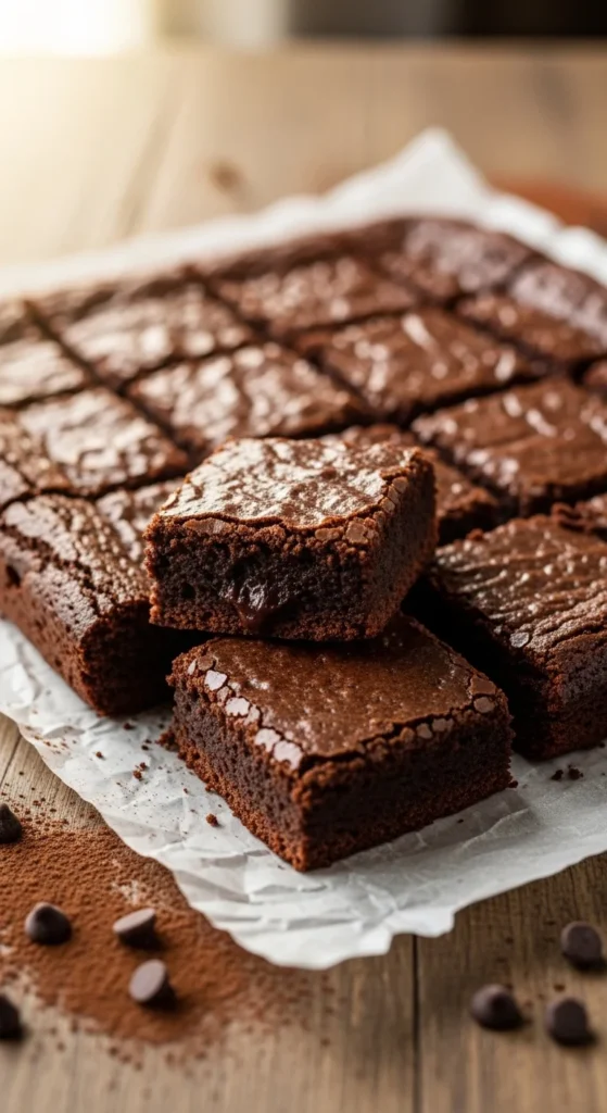 These brownies recreate the thin shiny crust found on bakery brownies. Beating eggs and sugar helps form the glossy surface while the inside remains soft and rich.