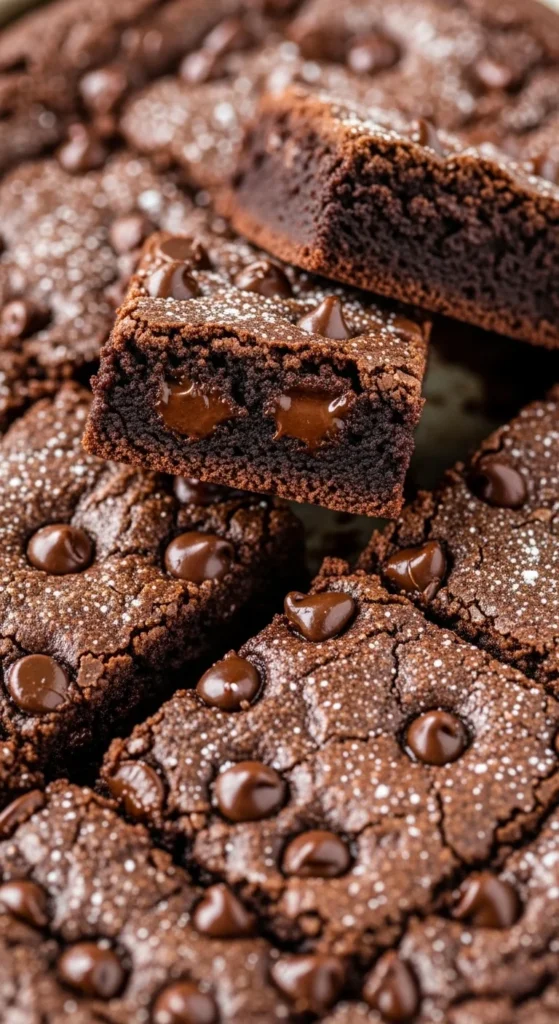 Chocolate chips melt inside the brownies and create soft chocolate pockets. The brownies stay dense and rich while the chips add extra sweetness.