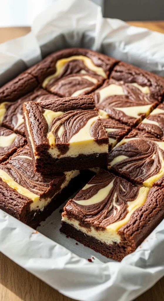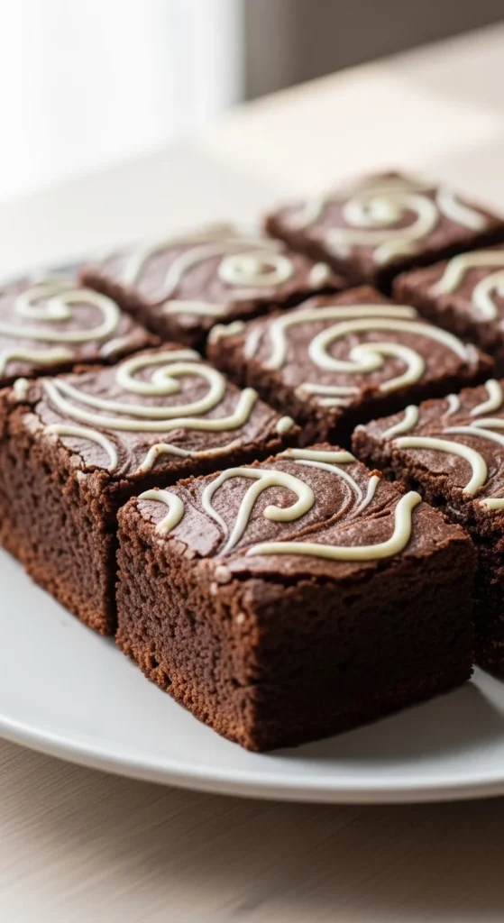 These brownies feature beautiful white chocolate ribbons that add both visual appeal and creamy sweetness. The swirl creates a bakery-style finish while keeping the preparation simple. Each bite offers a balanced mix of deep cocoa and smooth white chocolate.