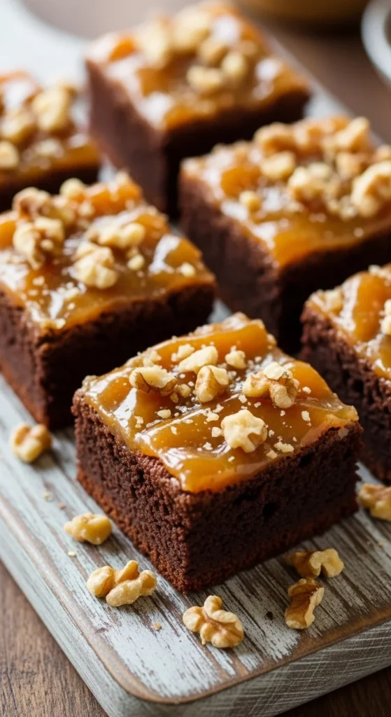 This heritage-style brownie nods to early hotel versions that featured fruit glaze and nuts. The rich chocolate base pairs beautifully with the light apricot sheen on top, while walnuts add a gentle crunch. The flavor combination feels slightly nostalgic yet still very appealing today. It’s a wonderful choice when you want something a little different from everyday brownies.
