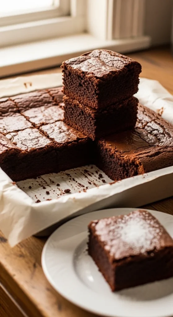 Serve with lightly whipped cream or a dusting of cocoa powder. These brownies also pair nicely with hot coffee. For gatherings, sprinkle chopped walnuts on top. Warm briefly for a softer bite. Store covered at room temperature.