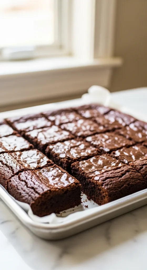 Baking in a slightly smaller pan creates taller, thicker brownie squares that feel bakery-style. The centers stay extra fudgy while the edges remain soft and chewy.