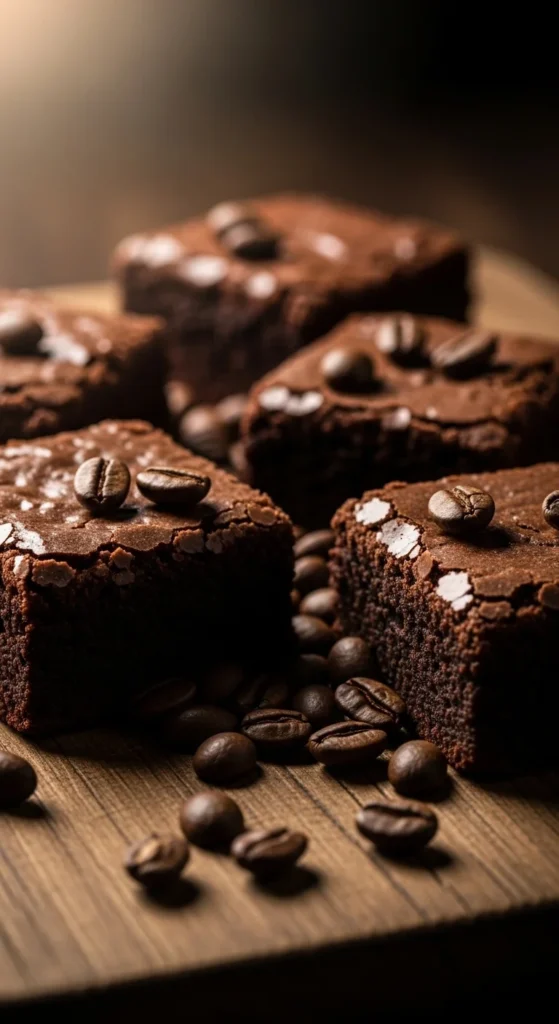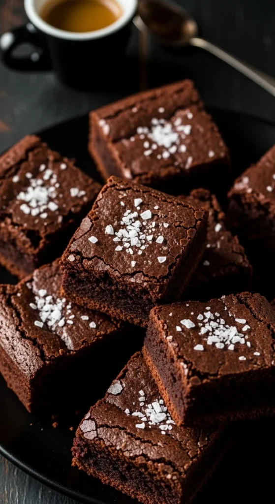 This recipe combines coffee powder and a flaky salt finish for bold chocolate flavor. Low flour keeps it dense. Butter and oil lock moisture in. Quick ribbon-stage beating creates the crinkly top. Figure-8 folding prevents overmixing. Short bake keeps the center soft. Perfect for people who want intense chocolate flavor.