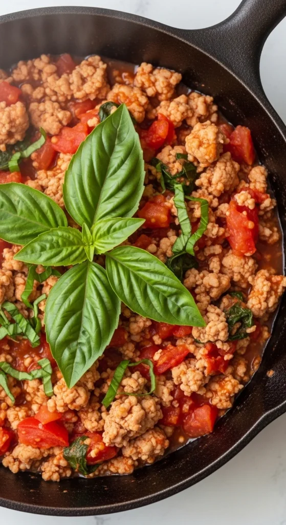 20. Turkey Tomato Basil Skillet