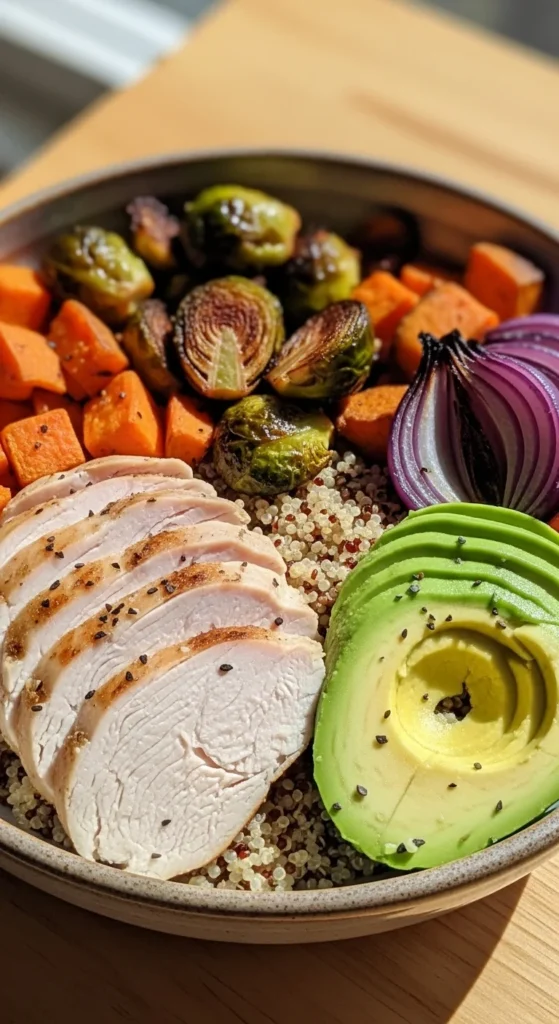 This quinoa turkey bowl is hearty, colorful, and packed with protein. The nutty quinoa base pairs well with savory turkey and vegetables. The combination of warm grains and fresh toppings creates a balanced meal that works for lunch or dinner.