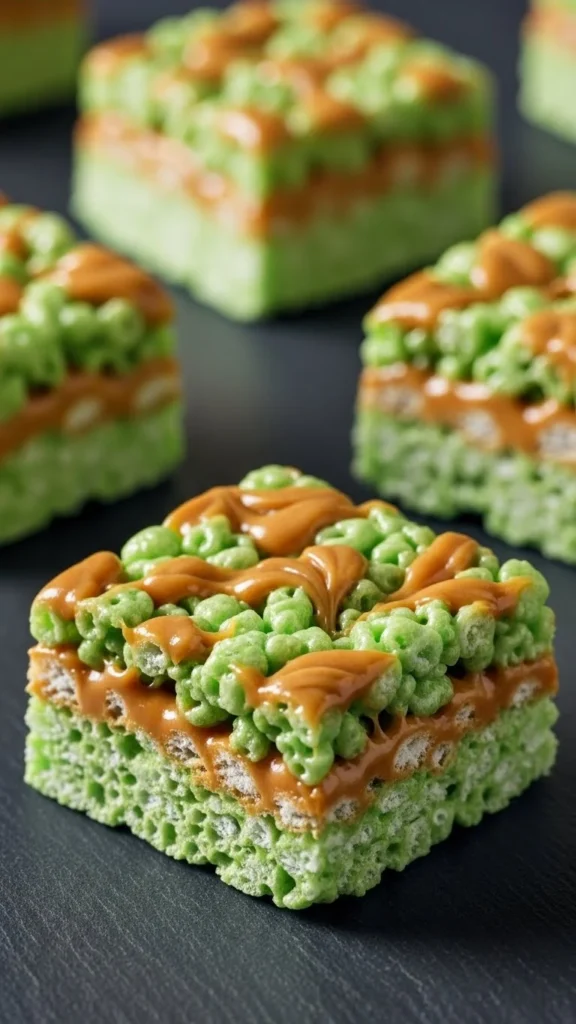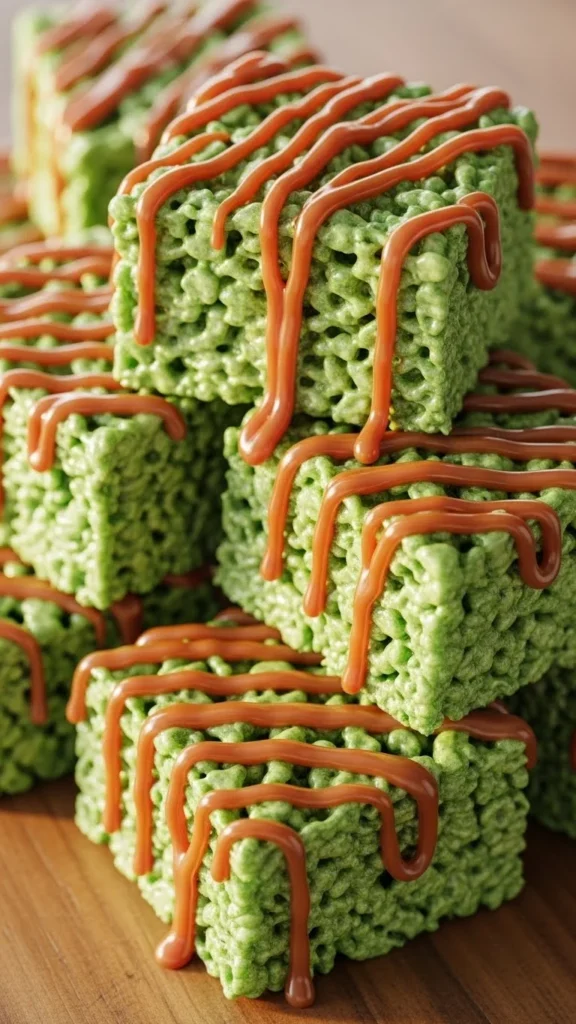 17. Green Caramel Drizzle Treats