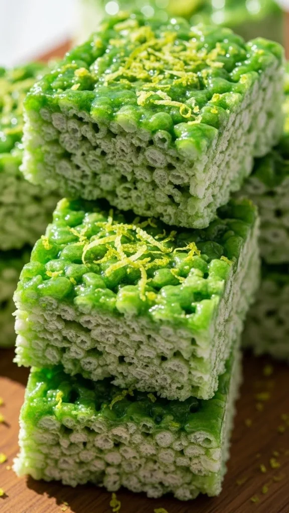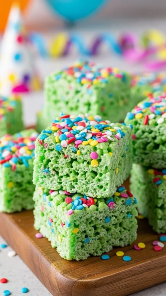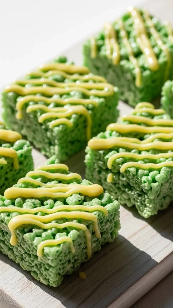 These gooey green Rice Krispie treats are quick to make, easy to share, and perfect for festive trays that get attention fast. With flavors ranging from minty and citrusy to chocolatey and crunchy, there’s something here for every crowd. Save a few favorites, mix and match for party platters, and share the fun with friends and family at your next celebration.