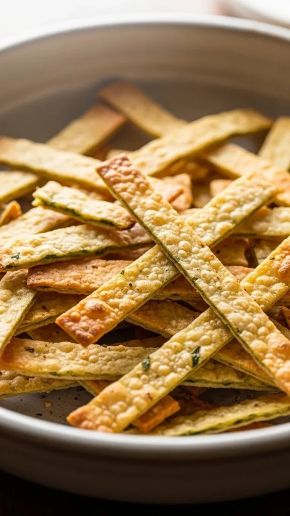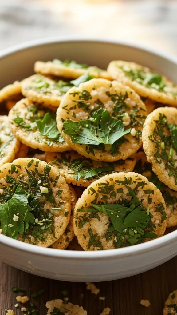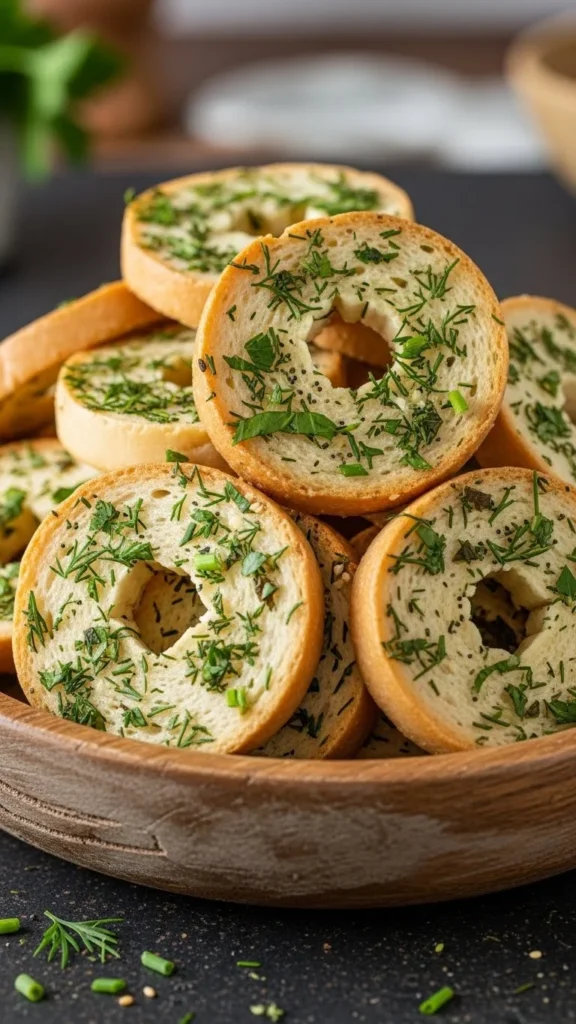 Crunchy bagel chips hold seasoning well and stay crisp. Garlic and herbs add savory flavor without overpowering. Good near cheese boards.