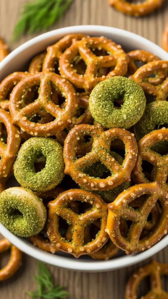 This mix uses familiar ranch flavor with a festive green look. Pretzels bake evenly and stay crisp. It’s simple, reliable, and great for large groups.