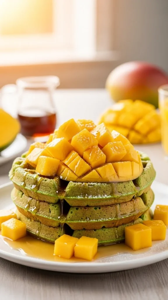 20. Spinach Mango Waffles