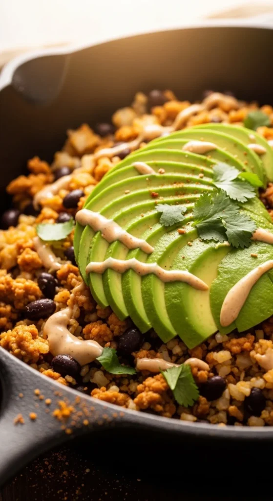 Top with cilantro and lime. Add avocado slices. Add Greek yogurt for creaminess. Serve with salad. Great for meal prep containers. Reheat gently so zucchini stays tender.