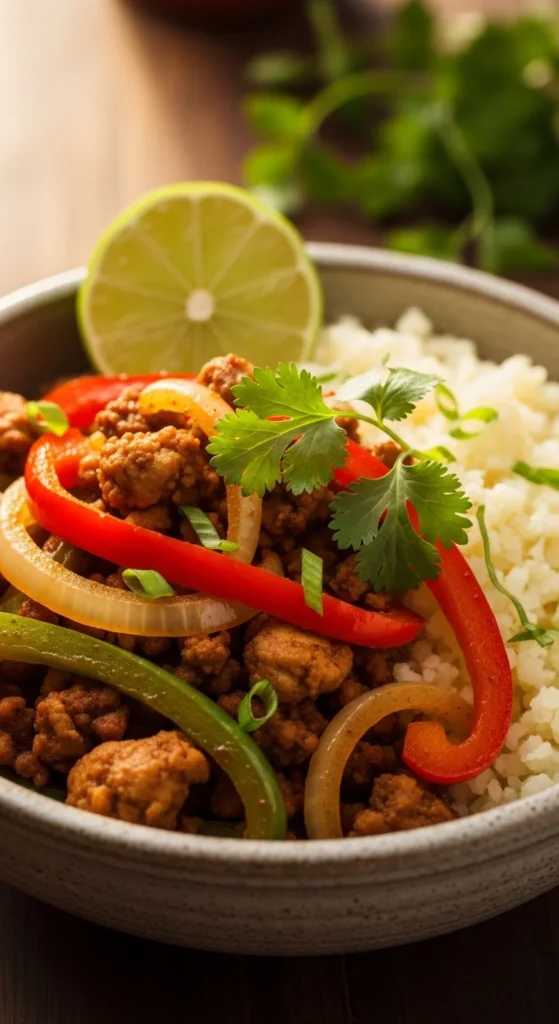 2. Fajita Turkey Bowls (Peppers + Onions, No Tortilla)
