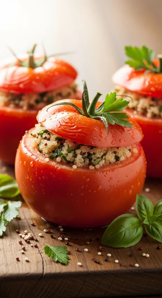 4. Fill tomatoes and bake 15–18 minutes.