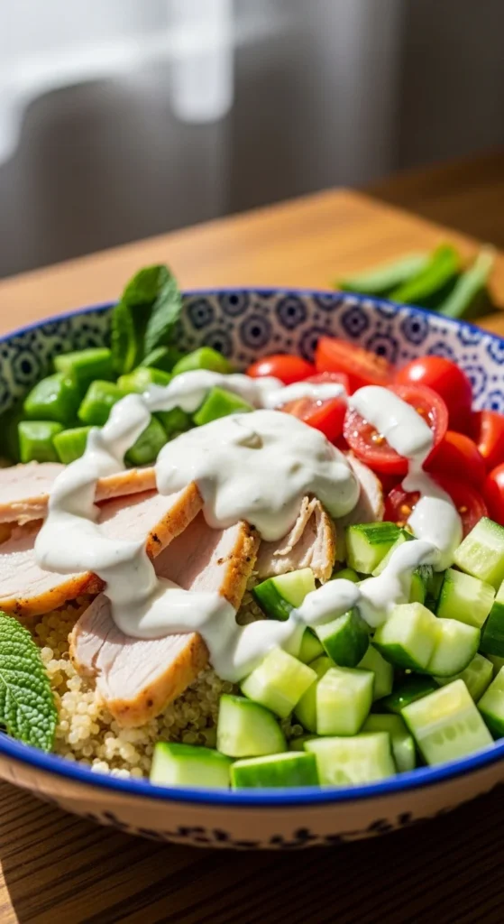 This bowl is fresh, comforting, and perfect for meal prep. Turkey is seasoned with oregano and garlic, then paired with crisp veggies. Quinoa makes it filling and protein-forward. Lemon yogurt sauce adds creamy tang without heavy ingredients. It’s quick and keeps well. Great for lunches and quick dinners. The flavors stay bright and satisfying.