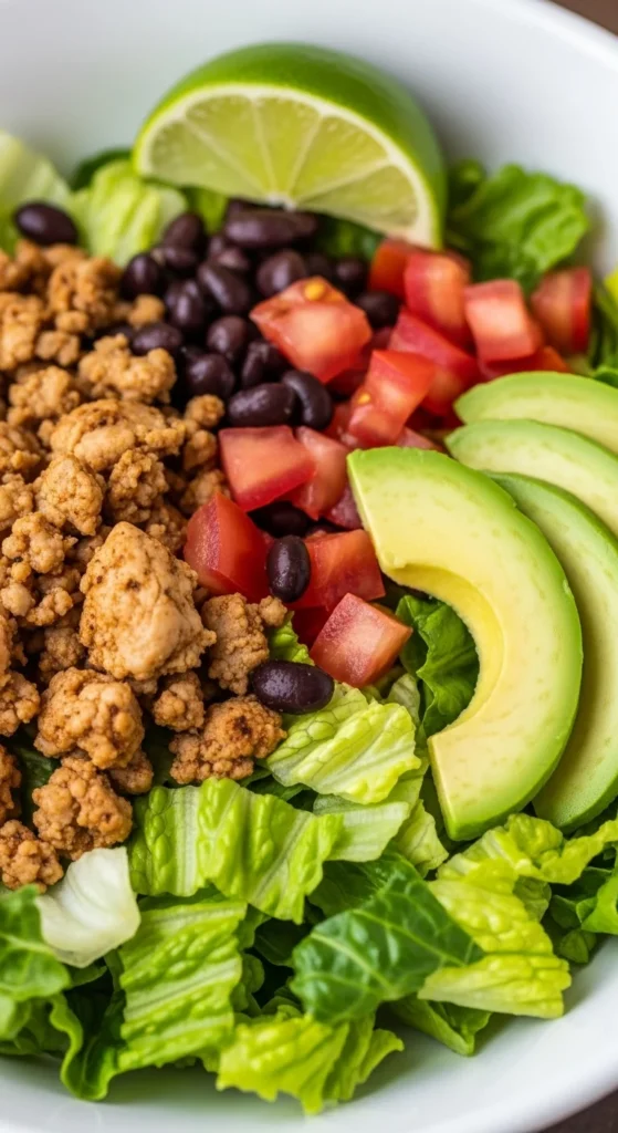 This is a healthy taco salad that still feels satisfying because the turkey is warm and flavorful. Black beans add fiber, tomatoes add freshness, and avocado makes it feel rich. Using fire-roasted tomatoes or salsa keeps turkey juicy. It’s fast, meal-prep friendly, and easy to customize. Great for busy nights when you want a lighter dinner. It’s comforting in taste with fresh crunch. Perfect for summer evenings.