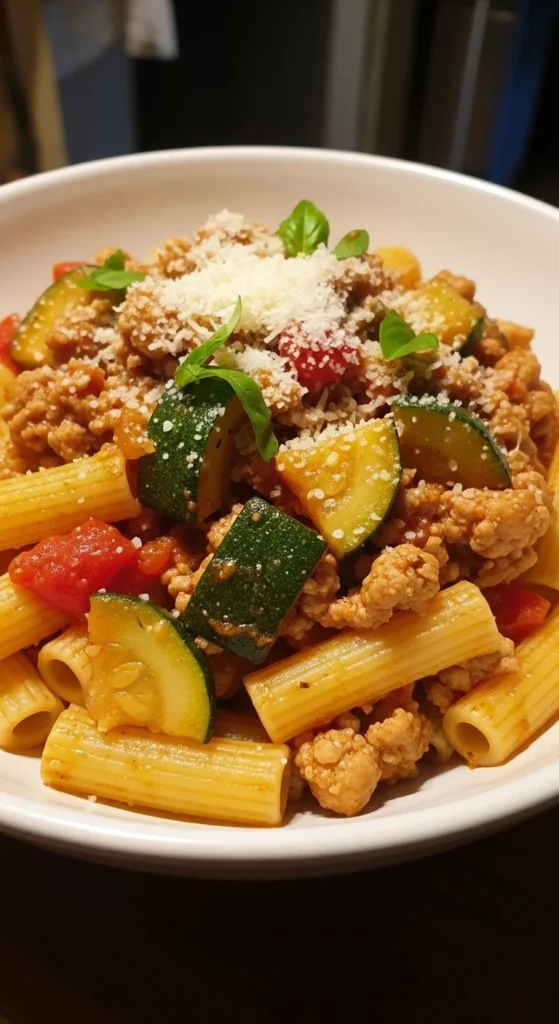 This sauce feels like comfort food but sneaks in extra vegetables. Zucchini melts into the sauce, making it thicker and more filling. Turkey adds protein and cooks quickly. Fire-roasted tomatoes add depth without long simmering. It’s great over whole wheat pasta or zucchini noodles. It reheats well for meal prep. A smart weeknight dinner. Comforting and balanced.