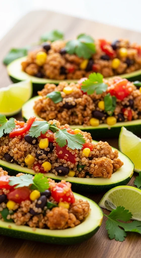 25. Turkey “Taco Quinoa” Stuffed Zucchini (Meal Prep Favorite)