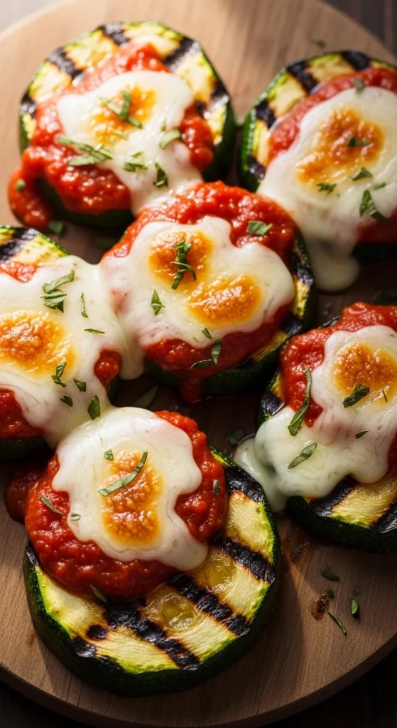 These mini pizzas are a fun low-carb snack or appetizer. Grilling adds smoky flavor and keeps zucchini firm. You add sauce and cheese and let it melt quickly. They’re perfect for summer cookouts and quick lunches. Kids love the “mini pizza” idea. You can customize toppings easily. Simple steps, big flavor. Best served hot.