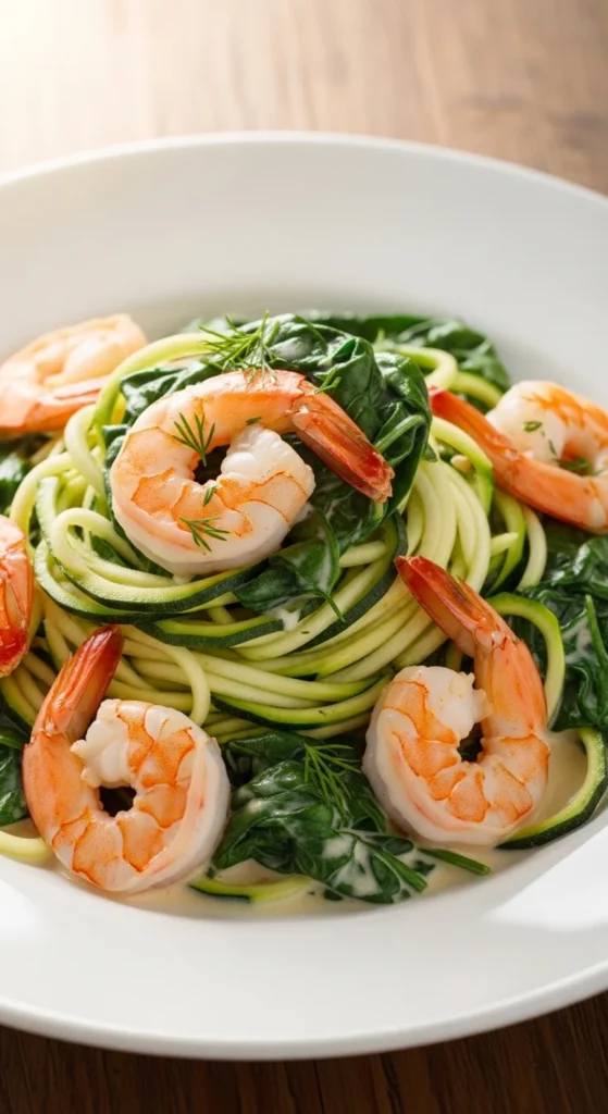2. Shrimp Zoodle Florentine (Spinach + Garlic)