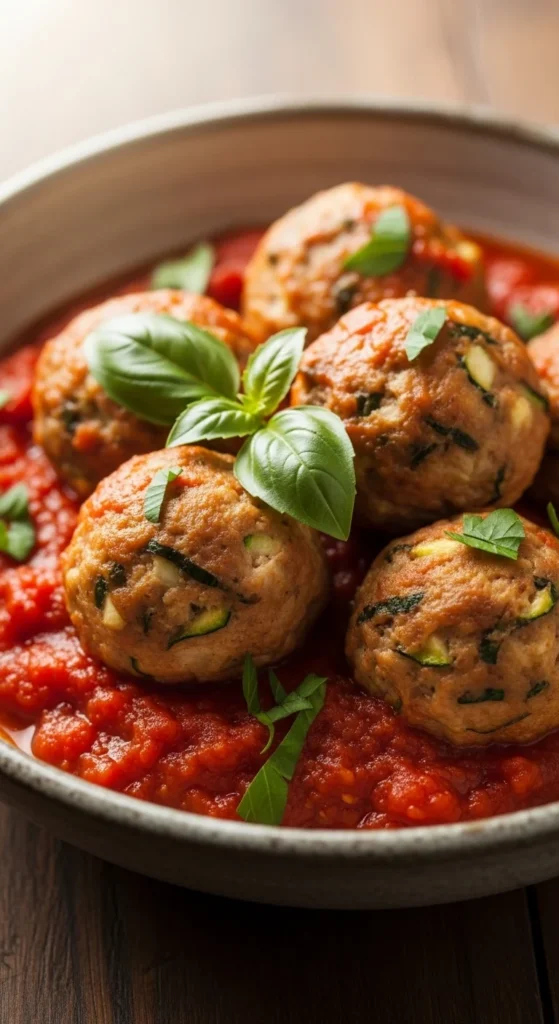 These meatballs are a smart way to sneak zucchini into a protein dish. Zucchini keeps meatballs moist, especially with lean turkey. They bake hands-off, making them great for meal prep. Marinara makes them comforting and familiar. The key is squeezing zucchini well so the mixture isn’t too wet. They freeze well and reheat easily. Great for pasta nights, zoodle bowls, or subs. A family-friendly option that still fits health goals.