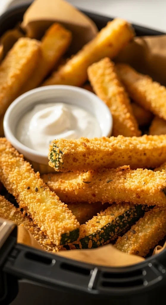 These fries hit the crunchy snack craving without deep frying. The air fryer makes them crisp with minimal oil, and the coating keeps them flavorful. Zucchini stays tender inside, so you get a great texture contrast. This is perfect for busy nights, snack plates, and kid-friendly sides. The biggest trick is cooking in batches so air can circulate. They’re fast enough for weeknights and fun enough for parties. Pair them with a light dip and you’re set.