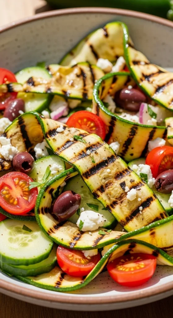 This bowl tastes fresh but still feels satisfying thanks to salty feta. Grilled zucchini adds smoky flavor and a firm texture. It’s quick and perfect for summer meal prep. Tomatoes and cucumbers keep it crisp and refreshing. Lemon dressing ties everything together with bright flavor. You can add chickpeas for extra protein. It works as a side or a light main. Easy, simple, and full of flavor.