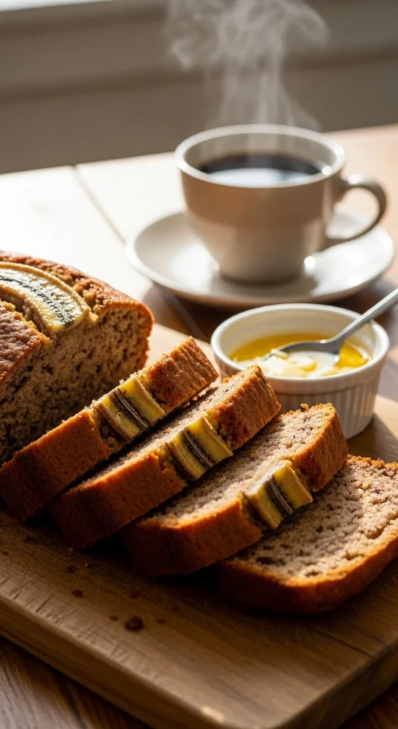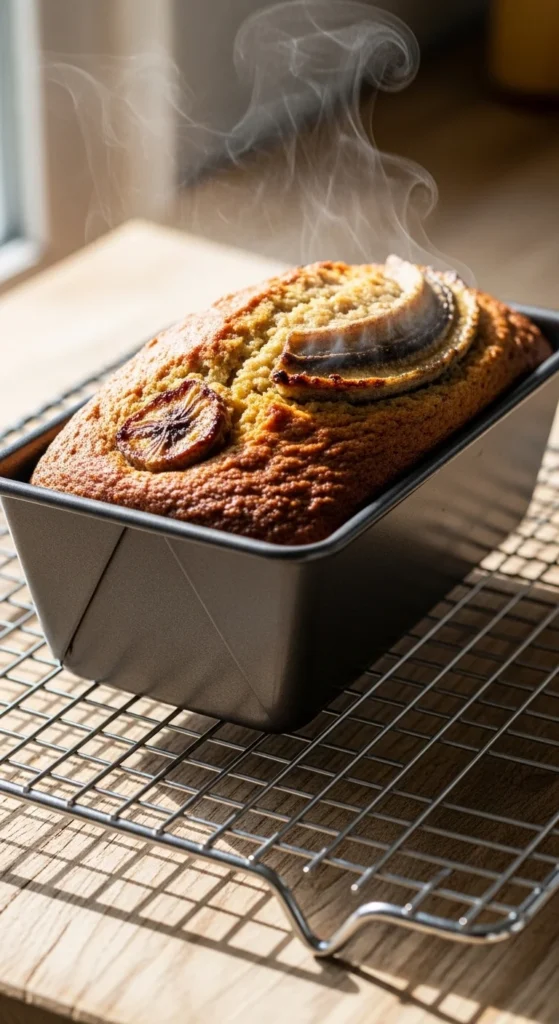 Once baked, let your banana bread cool in the pan for 10–15 minutes, then transfer to a wire rack. This step helps it set perfectly without crumbling.
