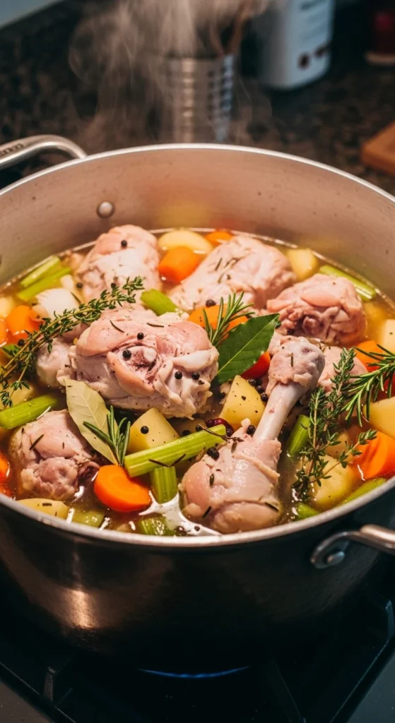 Step 2: Add Bone-In Chicken and Start the Stock