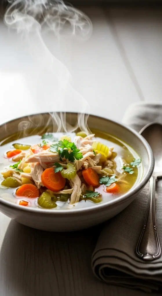 This method builds deep flavor the old-fashioned way: bone-in chicken, a proper mirepoix base, and a gentle simmer that transforms simple ingredients into pure comfort.