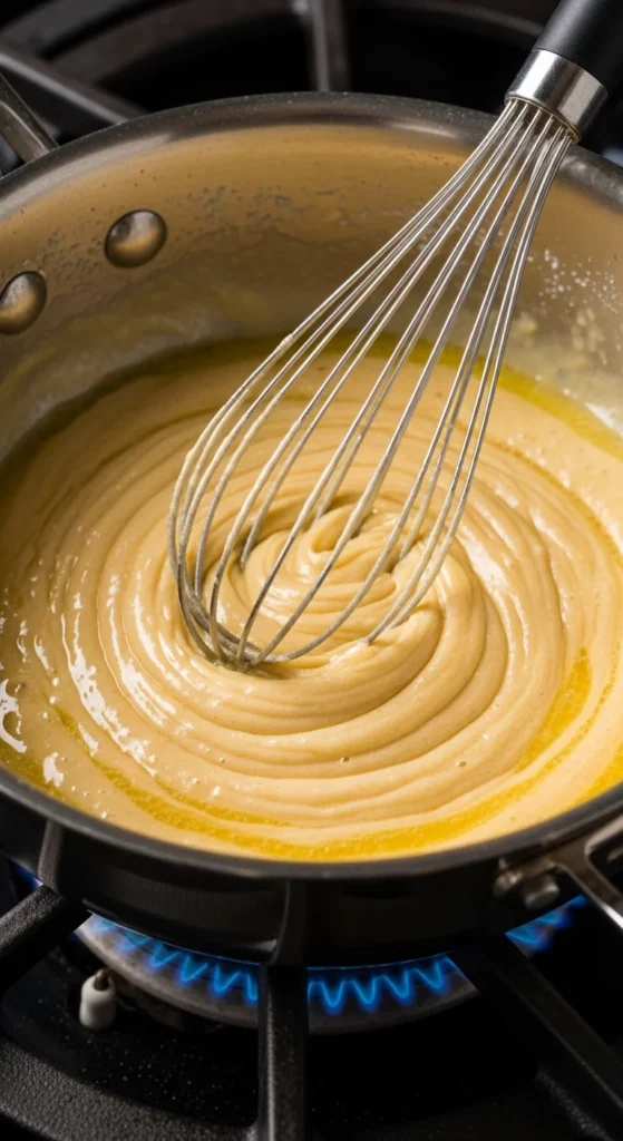 ⚠️ Don’t rush this step — undercooked roux can taste floury.