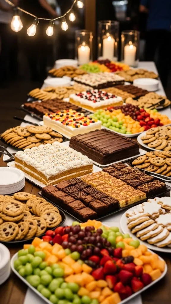 Party desserts often sit out for hours. Skip anything that melts, weeps, or needs last-second assembly.