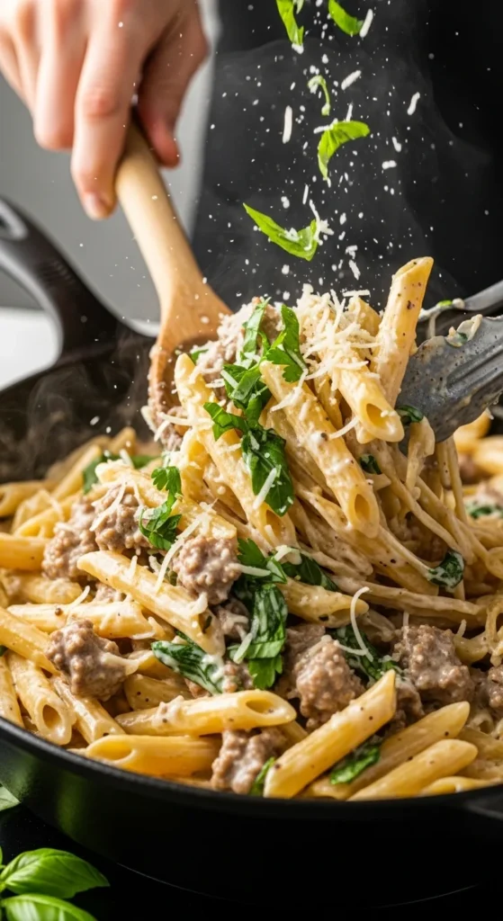 💡 Best pasta shapes: Penne and rigatoni trap creamy sausage sauce beautifully.