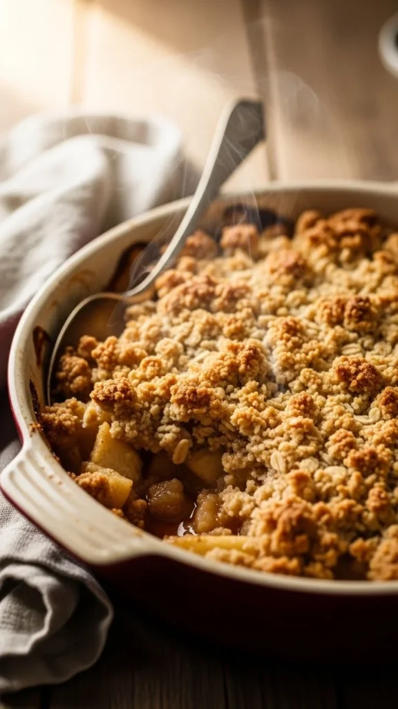 Soft baked apples meet a buttery oat topping in this cozy dessert. The apples turn tender and slightly syrupy as they bake, while the crumble stays crisp. It’s easy to prepare and always comforting.