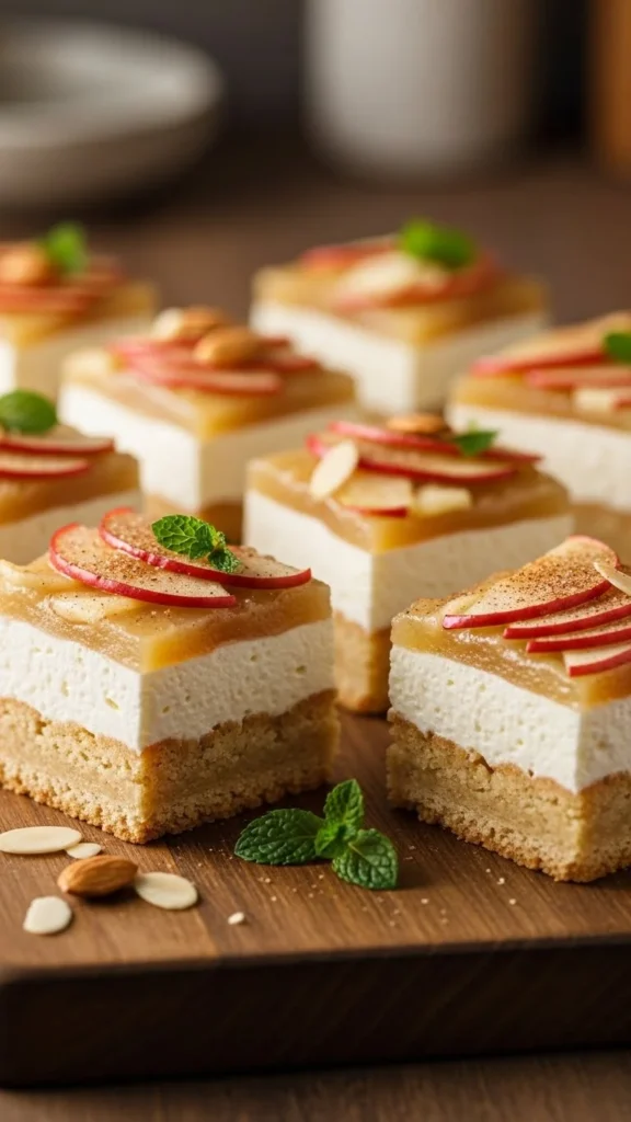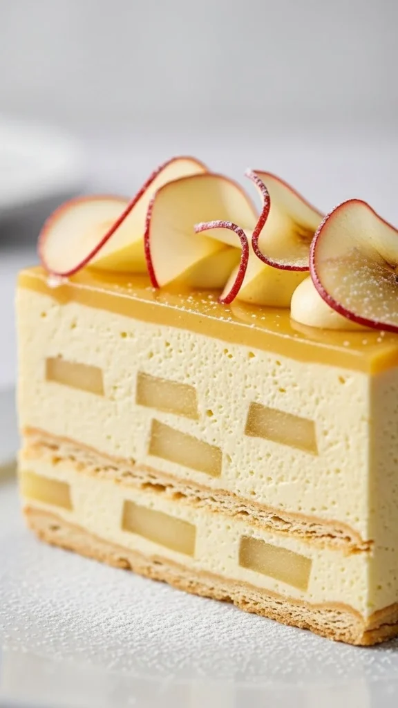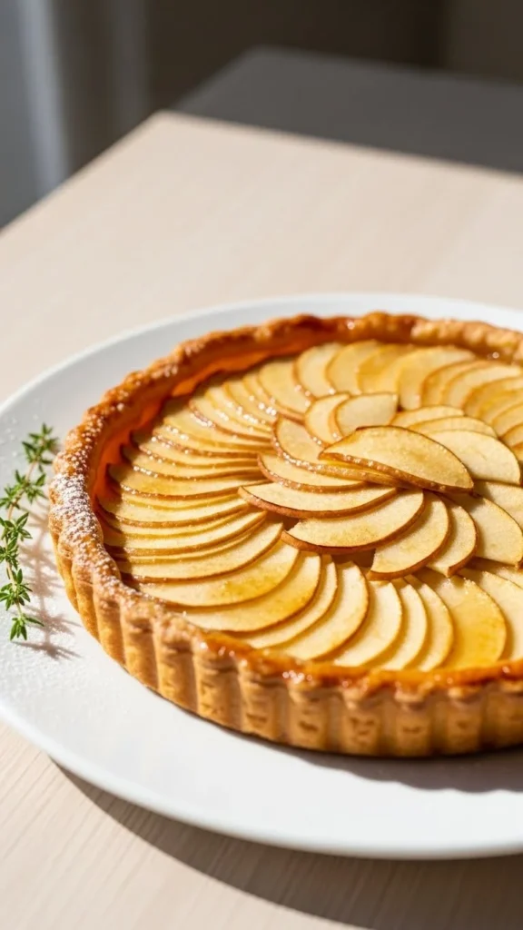 This apple tart features a crisp pastry base topped with tender apples baked until golden. It’s simple yet elegant, with a balance of sweetness and fruit.