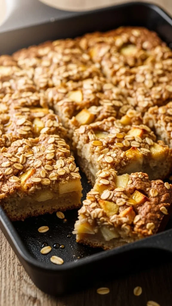 A soft base with apples and oats baked together for an easy crowd dessert.