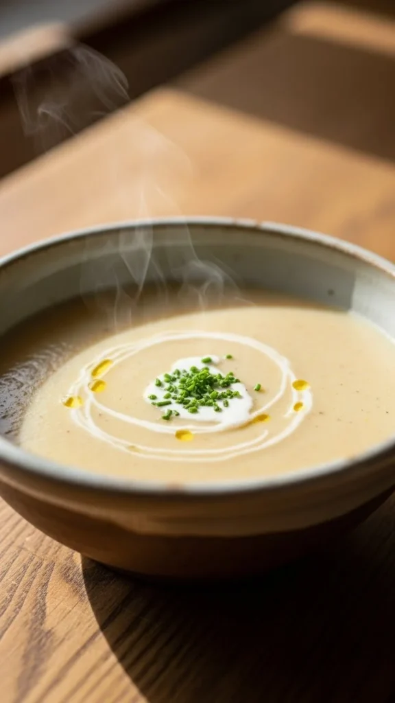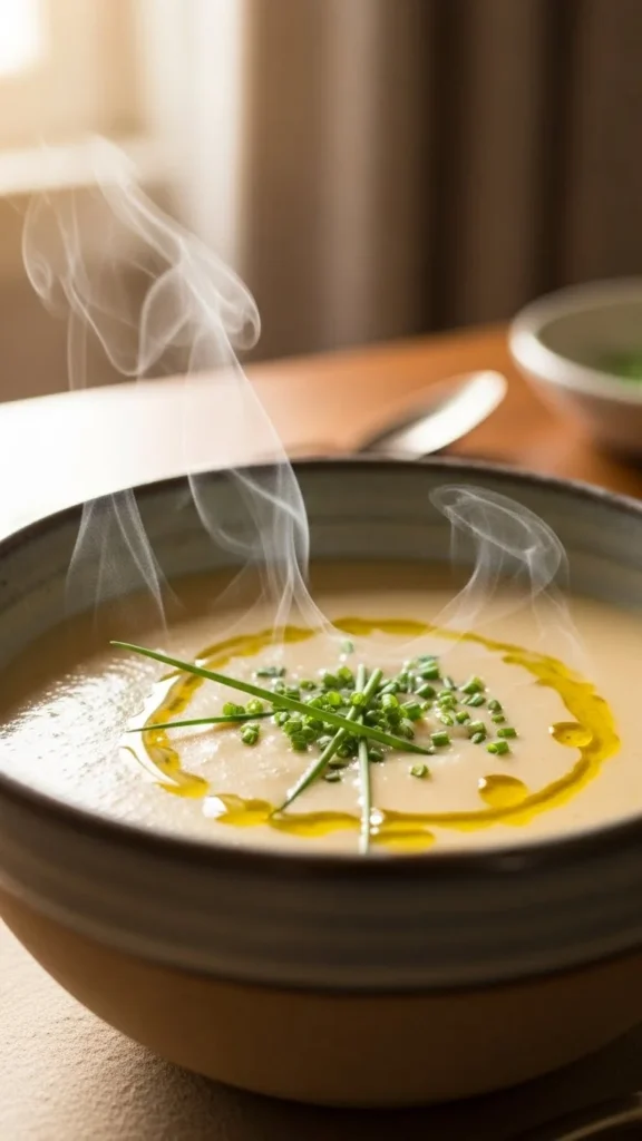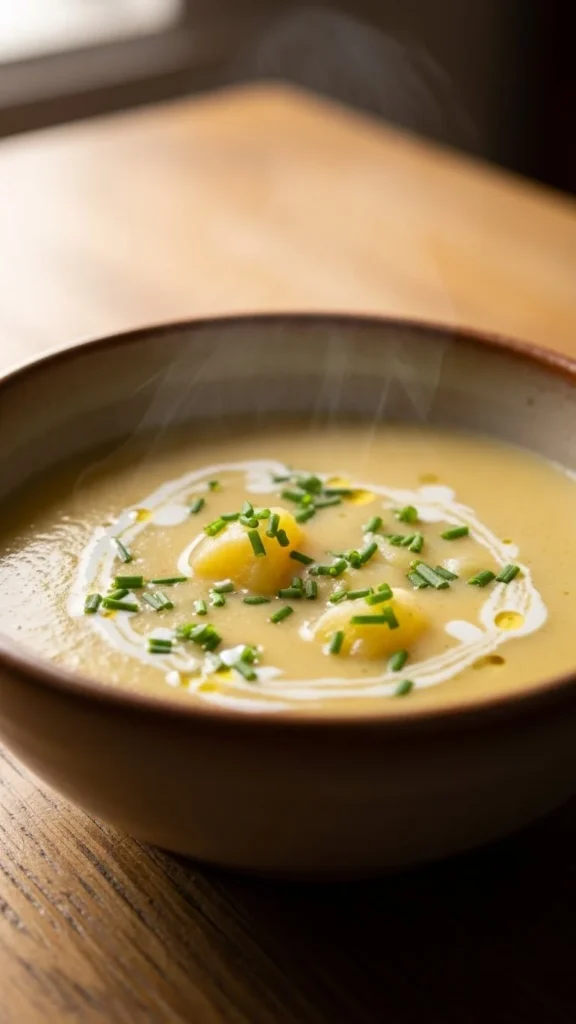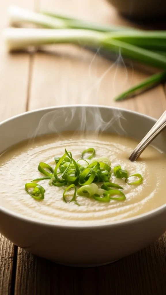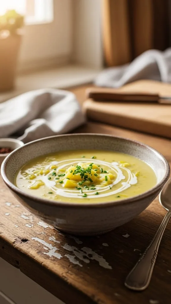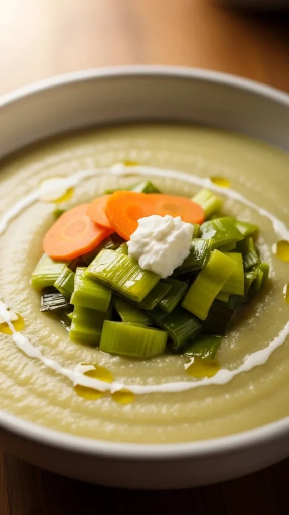 Leeks bring gentle sweetness that blends well with potatoes. The texture stays creamy and light. This soup feels calm and soothing. A nice choice for lunch or dinner.
