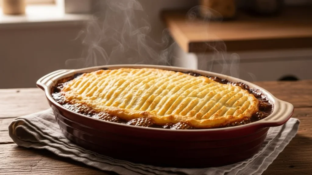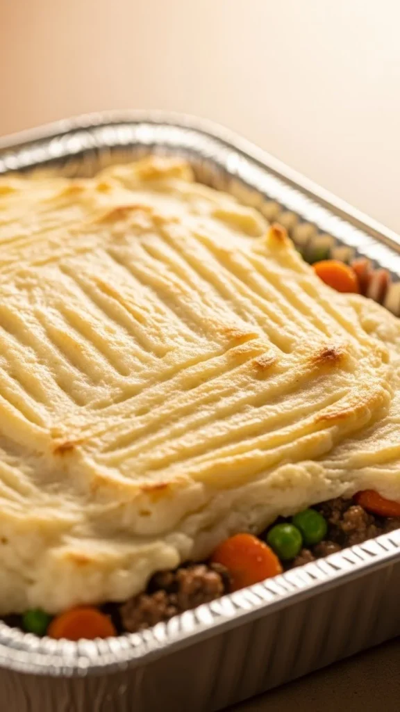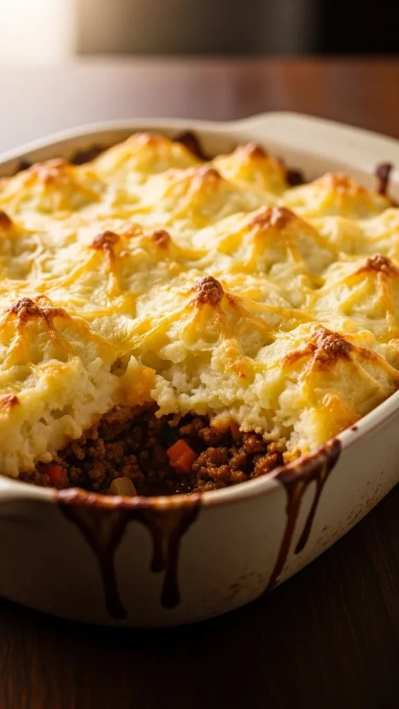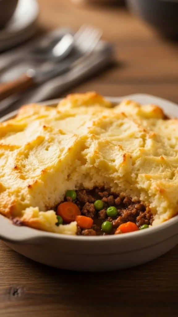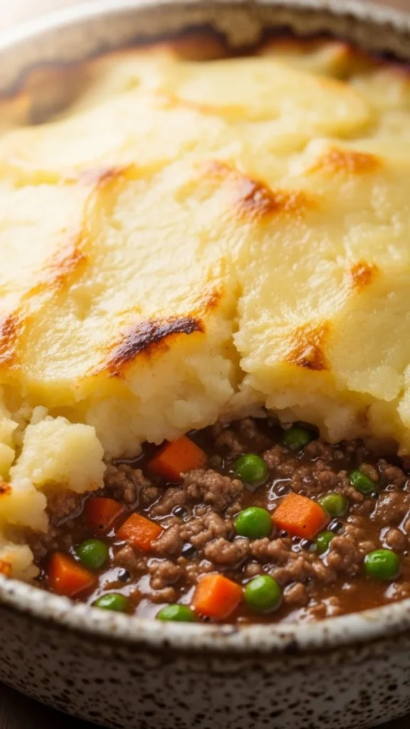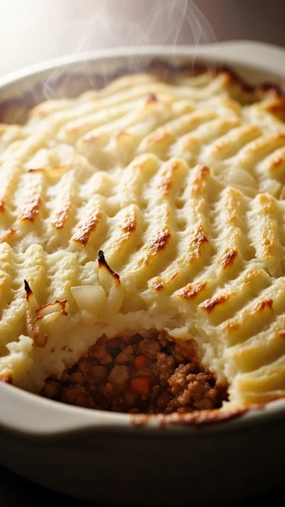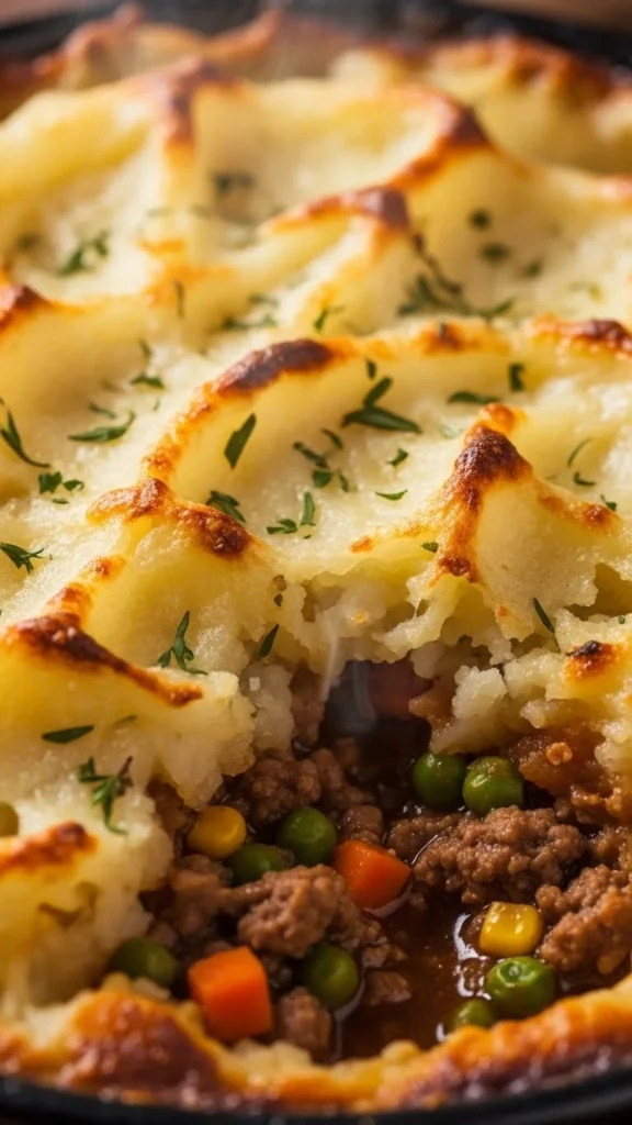 This version leans on root vegetables for a hearty, comforting base. The filling becomes thick and rich as it bakes. Mashed potatoes smooth everything together. It feels filling without being heavy. A solid option for cooler evenings.