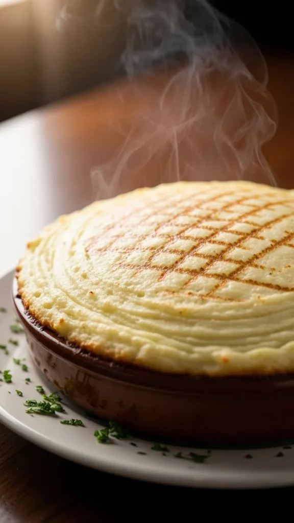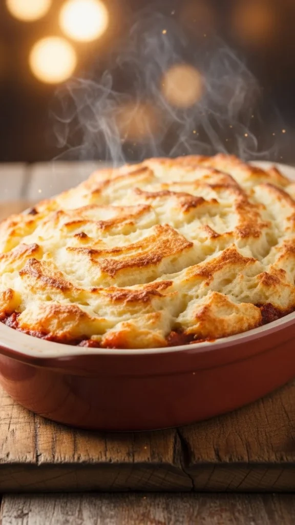 Onions folded into the potatoes add gentle sweetness and depth. The filling stays savory and smooth. The topping browns lightly while staying fluffy inside. Each bite feels cozy and familiar.
