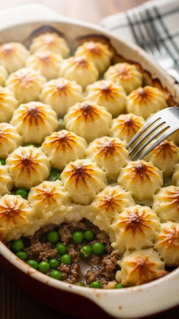 Sweet peas add softness and color to the lamb filling. The flavors stay gentle and comforting. Potatoes spread smoothly. Easy to enjoy for all ages.