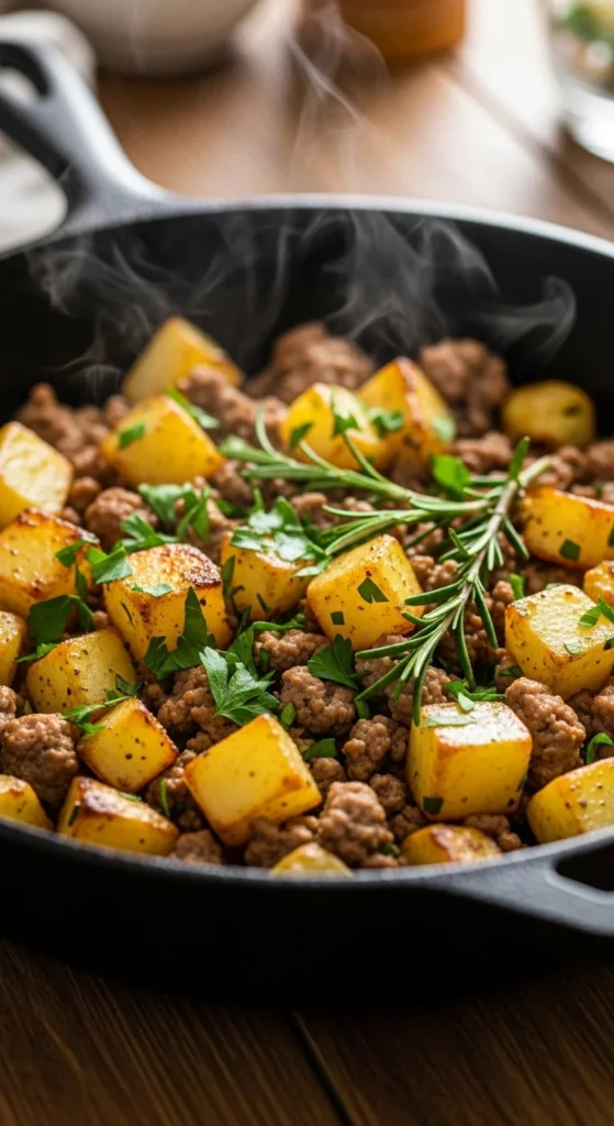 Serve this skillet topped with fresh parsley or chopped green onions. A fried egg on top makes it perfect for breakfast-style dinners. Add avocado slices for a creamy contrast. Hot sauce or chili flakes can add extra heat.
