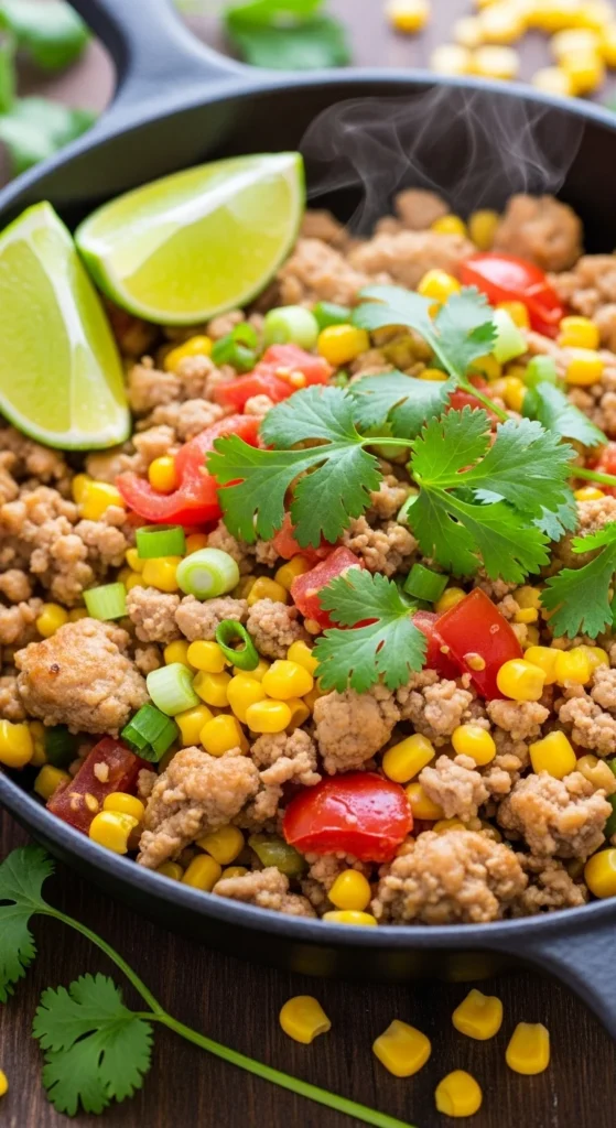 This skillet blends savory turkey with sweet corn and juicy tomatoes for a vibrant dish that cooks quickly. Cumin and garlic powder create a taco-style flavor while the corn adds bursts of sweetness. The combination of textures makes the meal satisfying without requiring many ingredients.