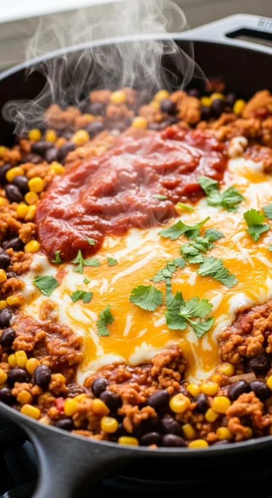 1. 15-Min Taco Skillet (Salsa + Beans + Microwave Corn)
