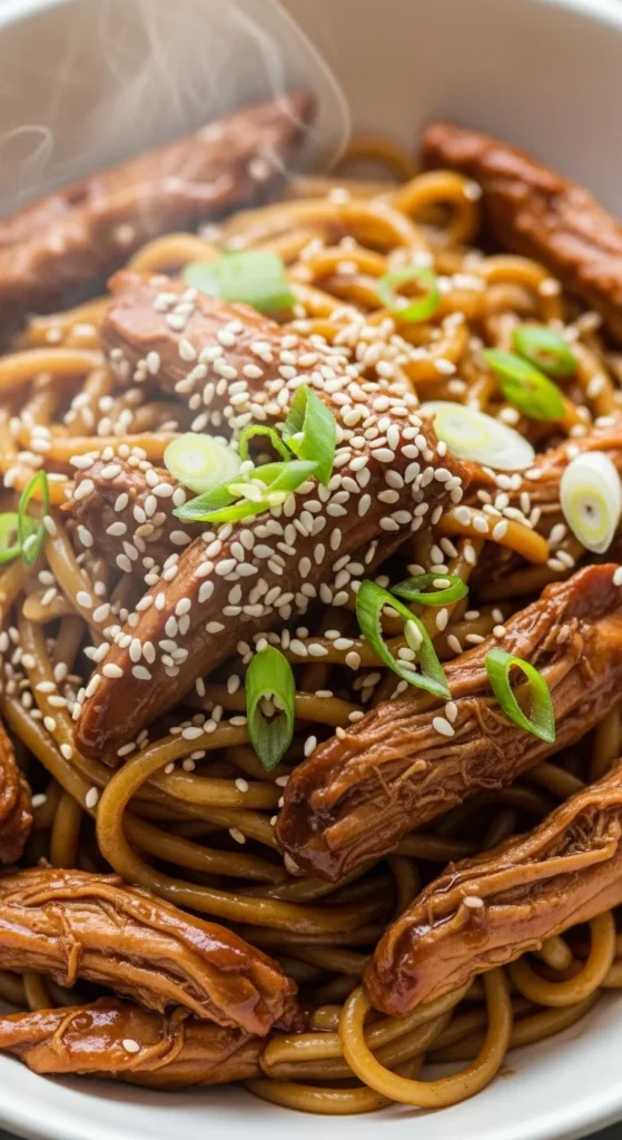 Top with scallions and sesame seeds. Add chili sauce for heat. Serve with cucumber slices. Add lime for brightness. Pack leftovers for lunch. Reheat gently so noodles don’t dry out.