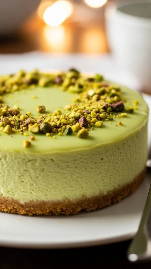 This no-bake cheesecake is bright, creamy, and perfect for busy days. Lime adds a fresh flavor that feels light after a hearty meal. The filling sets up smooth and sliceable in the fridge. The color looks naturally festive. It’s a great make-ahead dessert for parties.